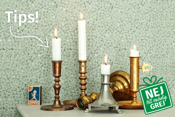 Man kan aldrig ha för många fina ljusstakar då vi lever i ett land som är mörkt stora delar av året. Välj helst äldre ljusstakar som finns att hitta i många varianter, material och prisklasser i antikaffär eller på kvartersloppis.