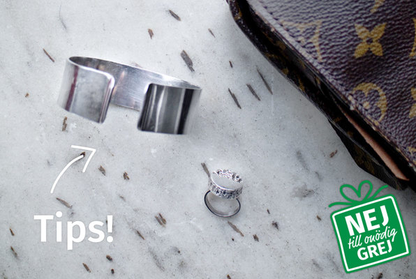 Allt behöver inte vara glimmande guld och gnistrande diamanter. Bijouterier från loppisar kan också vara underbart. Var bara noggrann med att undersöka om det saknas stenar, om låset är trasigt på det ljuvliga strasshalsbandet eller om stiften är borta på de läckra örhängena. Skadorna är sällan värda att laga. Regeln gäller såklart även för ett pärlhalsband med guldlås eller ett par manschettknappar i silver. Där kan däremot en guldsmed göra underverk om man behöver förminska en ring eller byta ett lås. Att låta guldsmeden göra om de där ärvda smyckena som aldrig används kan också vara en fin idé.