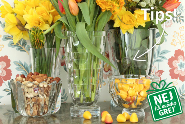 För trettio år sedan fanns de i överflöd hos de flesta, vaserna. Och vilken kvalitet sedan! Vaser och skålar i kristall är fina exempel på den design och höga kvalitet som gjorde den svenska glasindustrin världsberömd under 1900-talet. Det finns än så länge nästan outsinliga mängder vackra vaser och skålar att fynda. Från några tior på loppisar upp till många tusentals kronor på antikmässor. Leta runt och tjusas av valmöjligheterna. Kristallvaser och skålar är dessutom snygga att kombinera i grupp.