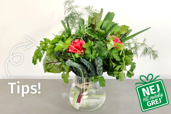 Precis som med vanliga blombuketter ska grönsakerna ges nya snittytor och ställas i kallt vatten.