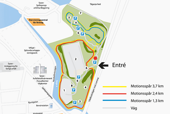I Spillepengsområdet finns tre löpslingor som är 1,3, 2,4 och 3,7 kilometer långa. Den kortaste slingan är ett elljusspår. På Spillepengen springer du på naturunderlag i backig terräng. Det kuperade området lämpar sig bra för backträning.