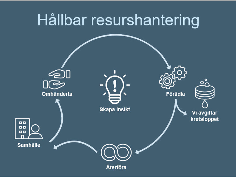 Avfall från hushåll, verksamhet och industrier samlas in och tas om hand. Sedan omvandlas det till nya resurser så långt det är möjligt - hos oss eller någon av våra samarbetspartners.