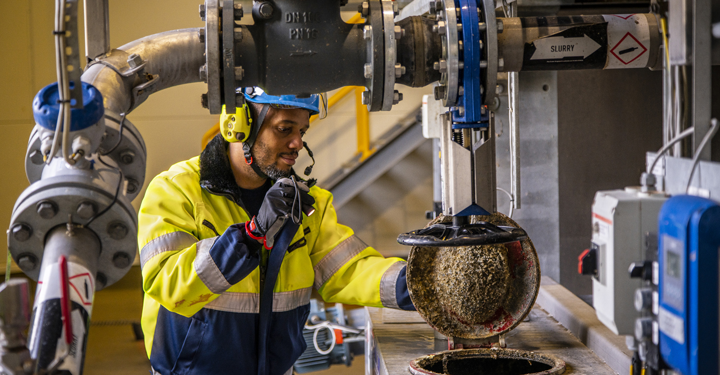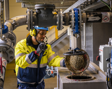 Själva produktionen av slurry sker i anläggningens hjärtat - skruvpressen.