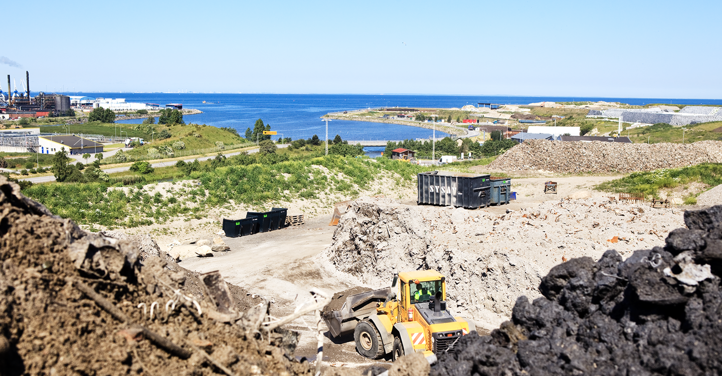 Med hjälp av maskiner utrustade med gripklor sorteras avfallet i olika fraktioner, till exempel metall, trä, gips, brännbart avfall och avfall som måste deponeras.