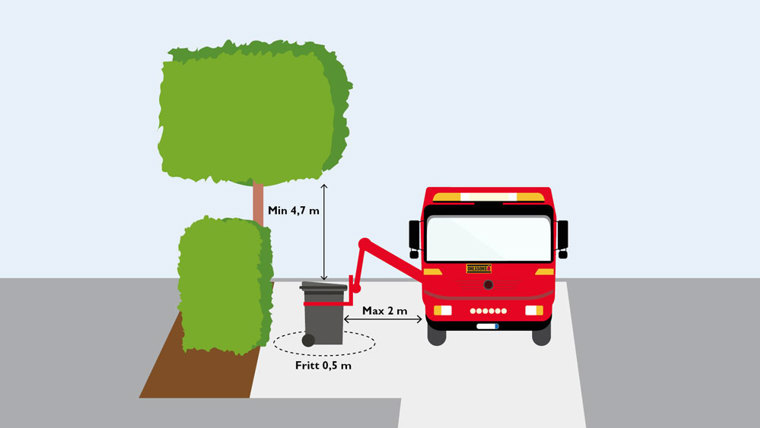 Ställ kärlet så att locket öppnas från gatan och hjulen står vända in mot tomten.
