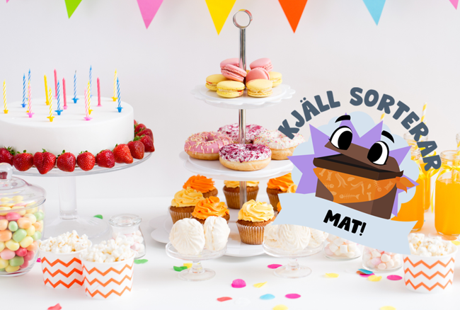 Filmtajm! Häng med matavfallskärlet Kjäll på kalas genom tre olika filmer och lektioner på tema mat, presenter och papper.