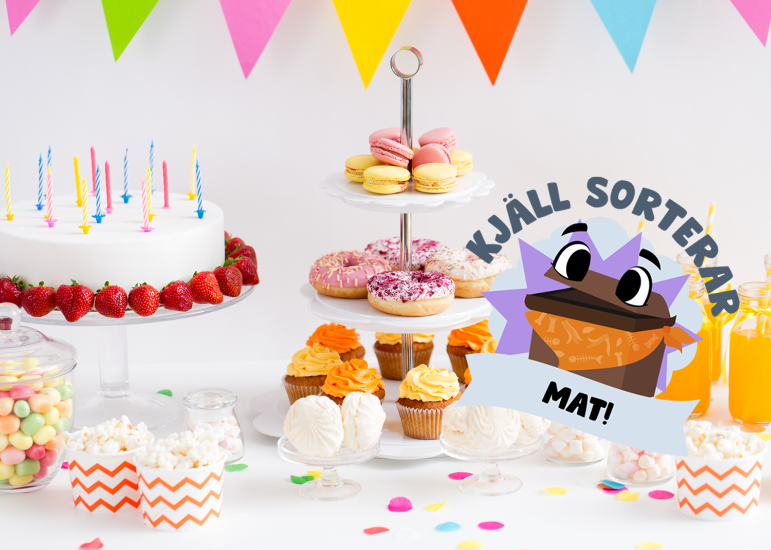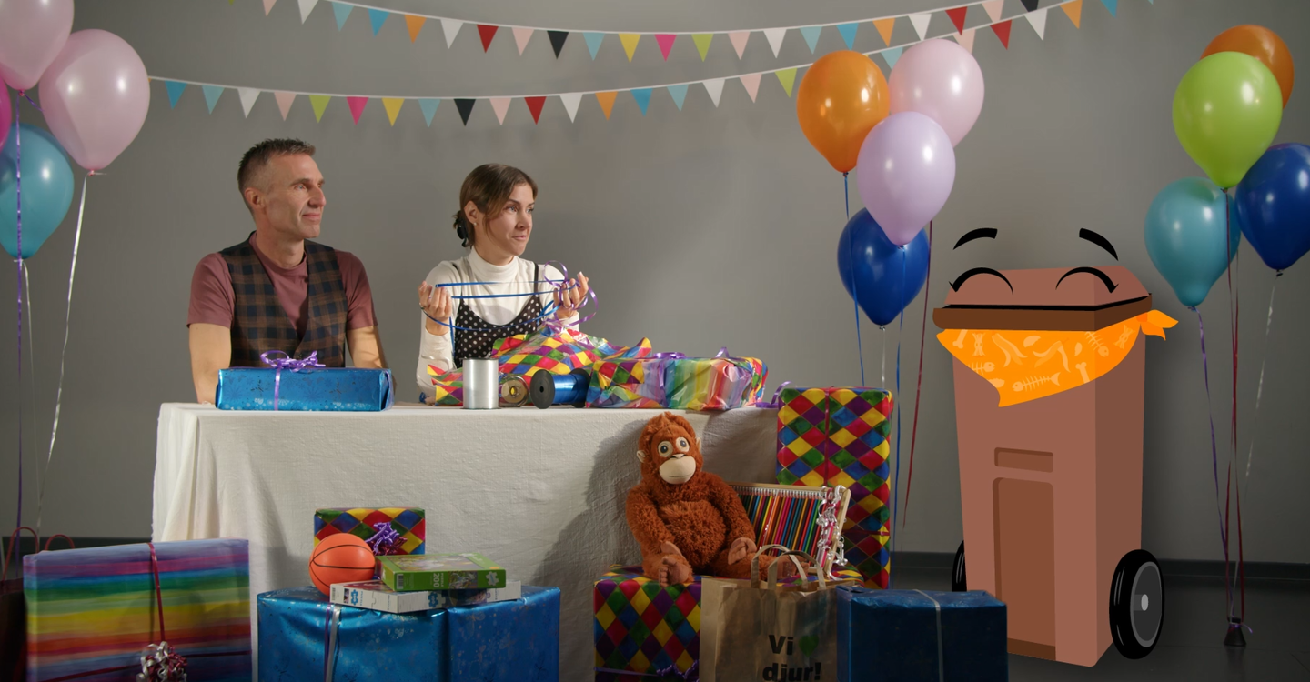Filmtajm! Häng med matavfallskärlet Kjäll på kalas genom tre olika filmer och lektioner på tema mat, presenter och papper.